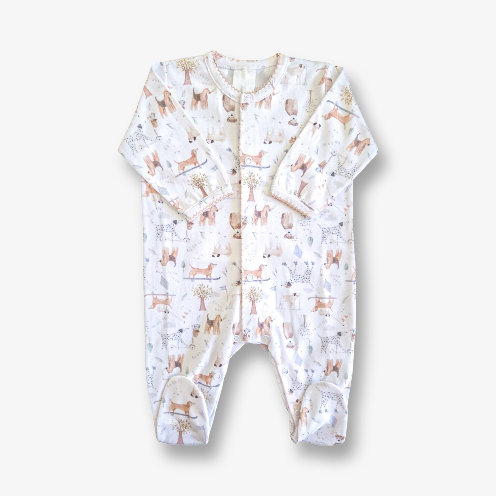 Enterito hipoalergénico en algodón pima con terminación picot, confeccionado en una calidad superior de algodón que tiene la fibras más finas y más largas, considerado el mejor algodón del mundo por su suavidad, durabilidad y resistencia. El algodón pima es ideal para los bebes, ya que ayuda a mantener la temperatura de su cuerpo, es hipoalergénico, extrasuave, no se encoje, no se deforma y se mantiene muy bien tras los lavados. Este modelo es de tallaje pequeño.